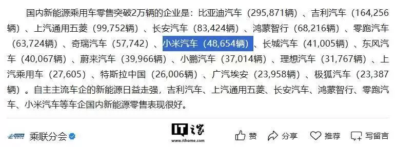 小米汽车10月销售近5万辆,新能源车交付量冲刺10万大关
