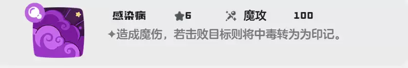 香芋巨角蛛在使用低能耗技能时,能为对手叠加四层中毒效果。每回合结束后,对手都会受到相当于最大生命值3%的毒性伤害,并且中毒伤害会受到属性克制关系的影响。