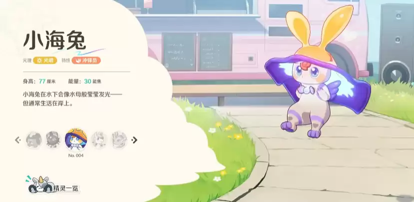 小海兔的身高达到77厘米,初始能量为30焦耳,所以前期使用它时,能量支持是足够的。从属性上看,它属于光明元素的角色,不仅可以作为先锋吸收敌方火力,还能通过光明元理的效果提升全队的生存能力。这种光明增益效果对很多队伍至关重要。而作为冲锋类角色,它还有机会通过技能为团队提供加速或护盾加持。