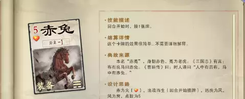 进攻型坐骑以出色的机动性和爆发输出著称。赤兔能提升20%移动速度,并拥有专属技能"逐日"——每回合开始时摸一张牌,若该回合未受到伤害,则可额外再摸一张。这种特性使其特别适合先手压制型武将,若配合连击类技能可以快速建立战场优势。乌雅则具备"突围"技能,每次使用【杀】指定目标时可摸一张牌,每回合最多触发三次,非常适合频繁使用【杀】的武将,实现手牌资源的持续补给。防御型坐骑中,的卢与绝影表现尤为突出。的卢在受到伤害时可进行一次判定,判定结果有利时可实现残血反制;辅助类代表为爪黄飞电与盗骊,分别拥有"传令"与"盗粮"技能,能在团队协作中发挥调度与干扰作用。