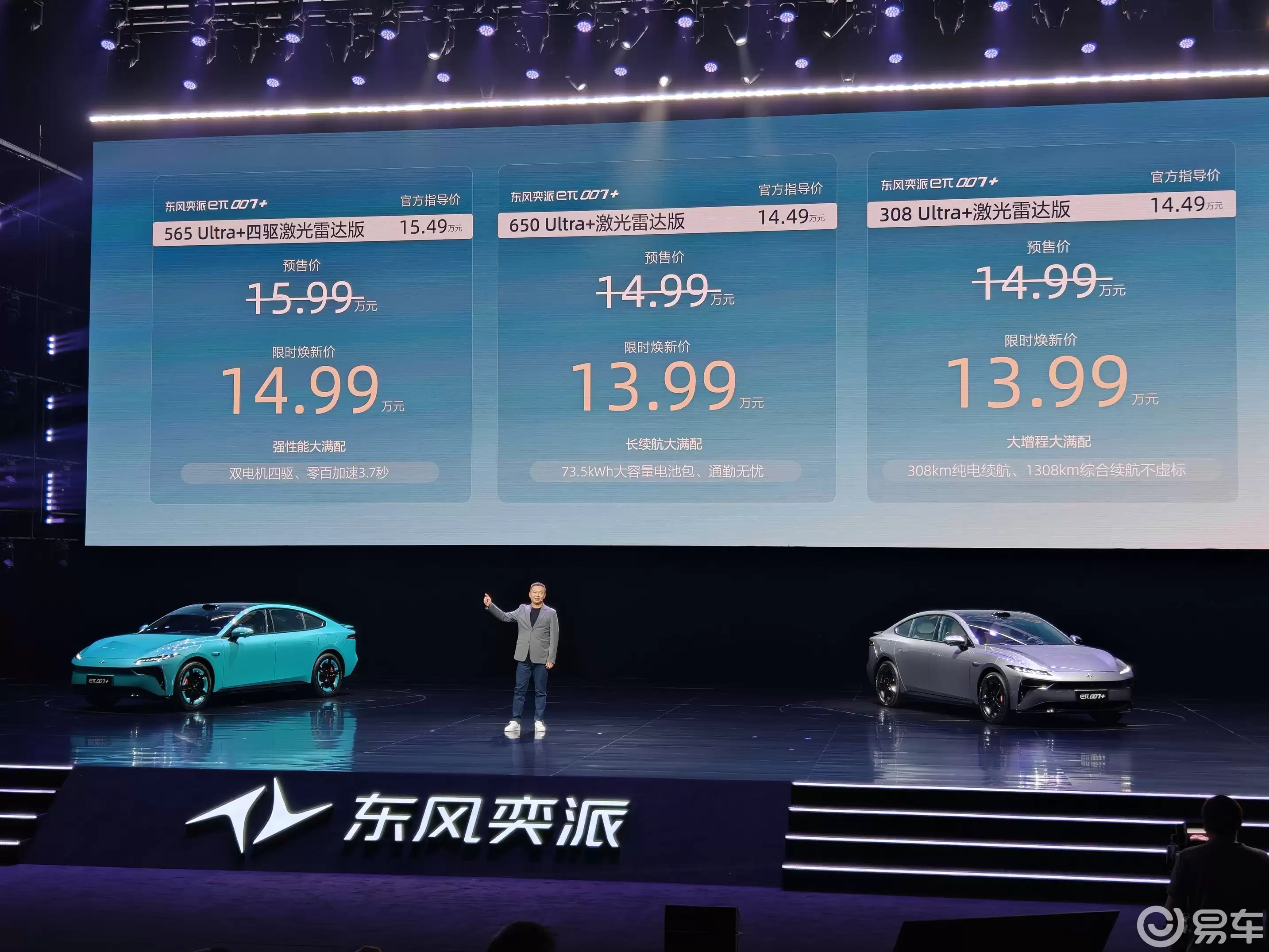 东风奕派并未忽视入门级市场,保留了现款车型并调整了价格策略。在去掉激光雷达后,纯电550 Air版售价11.59万元,纯电550Max和增程230Max版售价12.59万元,纯电650Max版售价12.99万元。这些车型凭借更高阶的配置和更强的性能表现,向启源A06、日产N7的入门版本发起有力挑战。