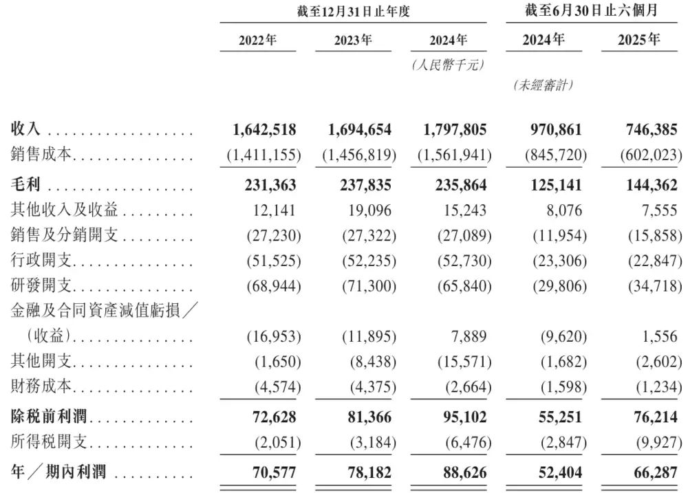 招股书数据显示,中鼎智能在2022至2024年三年间,营收分别为16.43亿元、16.95亿元和18亿元;对应毛利分别为2.31亿元、2.38亿元和2.36亿元;年内利润分别为7058万元、7818万元与8863万元。