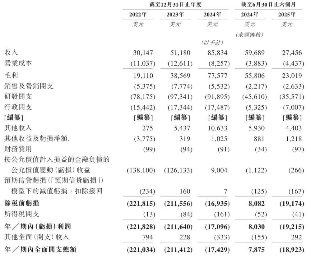 招股书披露,英矽智能在2024年、2024年及2024年分别实现营业收入3015万美元、5118万美元和8583万美元;同期净亏损分别为2.2亿美元、2.11亿美元和1710万美元。