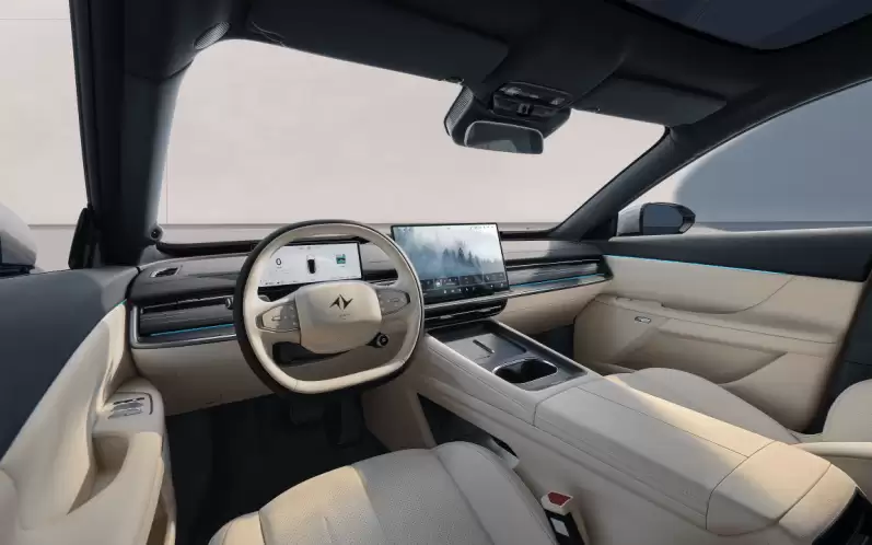动力系统提供双模式选择:增程版搭载1.5L发动机与160kW电机组合,纯电续航达308公里,综合续航里程突破1308公里;纯电版提供200kW单电机与400kW双电机版本,零百加速最快仅需3.7秒,续航里程分别为650公里与565公里。底盘采用50:50黄金轴荷比与超低重心设计,配备百万级跑车同款自适应可变阻尼减震器FSD,转向稳定性与操控极限显著提升,同时搭载爆胎稳行功能保障行车安全。