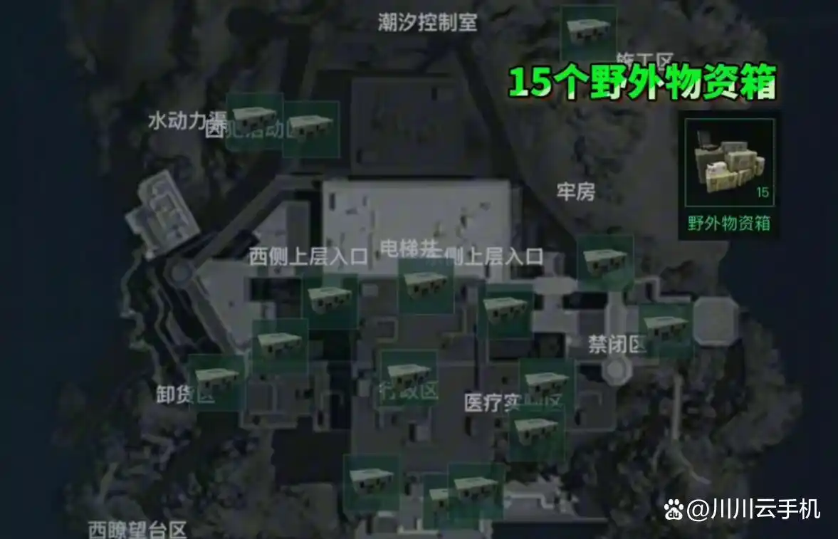 潮汐监狱区域(共15个箱子):虽然物资箱数量较多,但该区域战备等级较高,交火激烈、生存压力大,风险与收益不成正比,同样不作推荐。