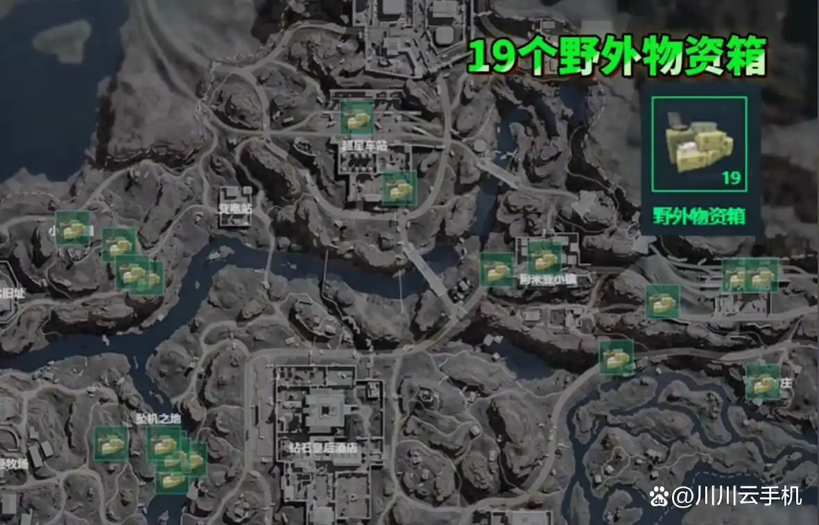 长弓溪谷区域共设有19个物资箱:资源最为丰富密集!这张地图规模宏大,物资箱分布极广,无论复活点设置在哪里,附近总能找到收获,综合搜集效率非常高。