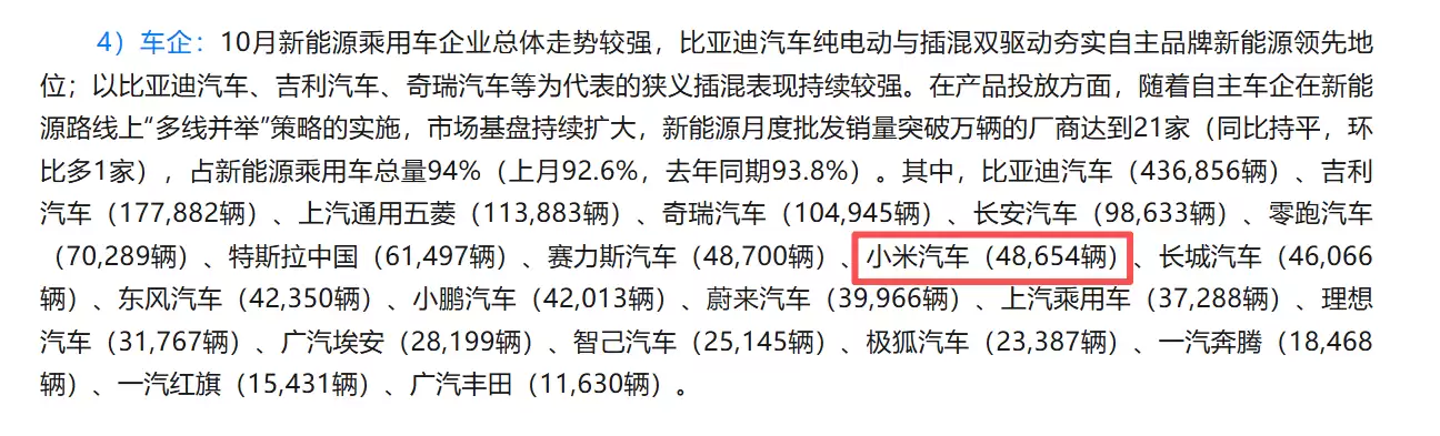 小米汽车10月销量近5万辆,YU7批发达3.3万超Model Y