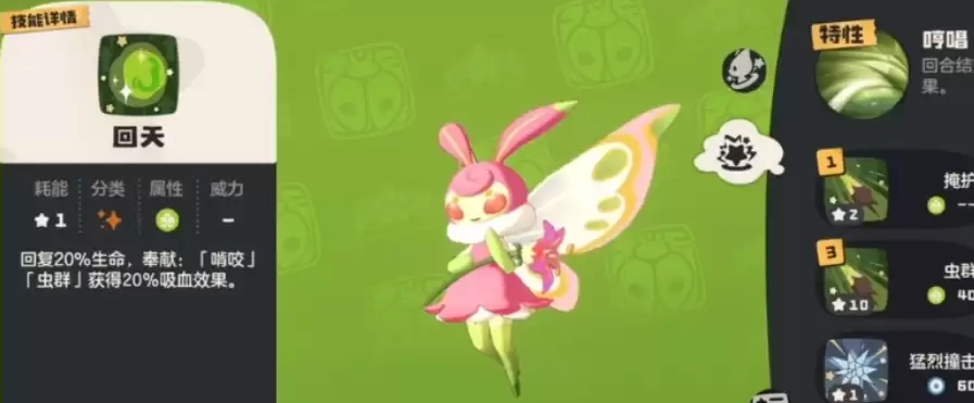 草衣虫拥有一项名为“哼唱”的专属特性,每回合结束时有一定概率触发“奉献”效果,这一机制能有效提升其续航能力和战场持久度。由于草衣虫本身具备较高的生命值,适合担任队伍中的前排担当,能够吸收大量伤害,保护后排输出。虽然它的攻击速度偏慢,但配合控制类技能,可以在关键时刻打乱对手节奏。因此,草衣虫在阵容中扮演着攻守兼备的角色,既能承受压力又能发起反击,是多种战术体系中不可或缺的重要成员。