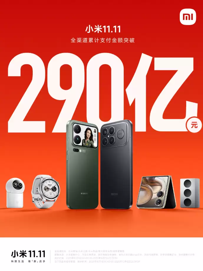 11月12日凌晨,小米公司公布最新数据显示,截至11月11日23点59分,全渠道累计支付金额已突破290亿元大关。