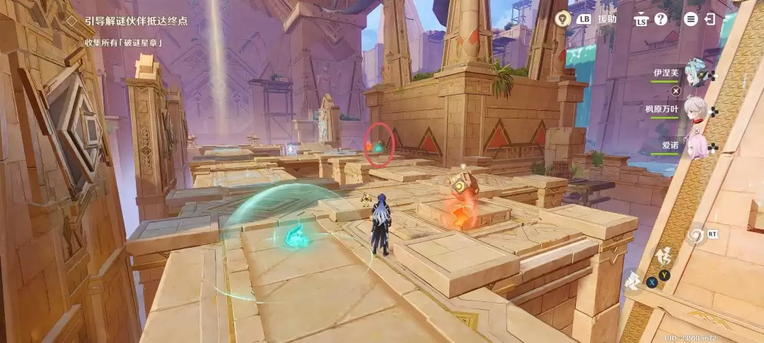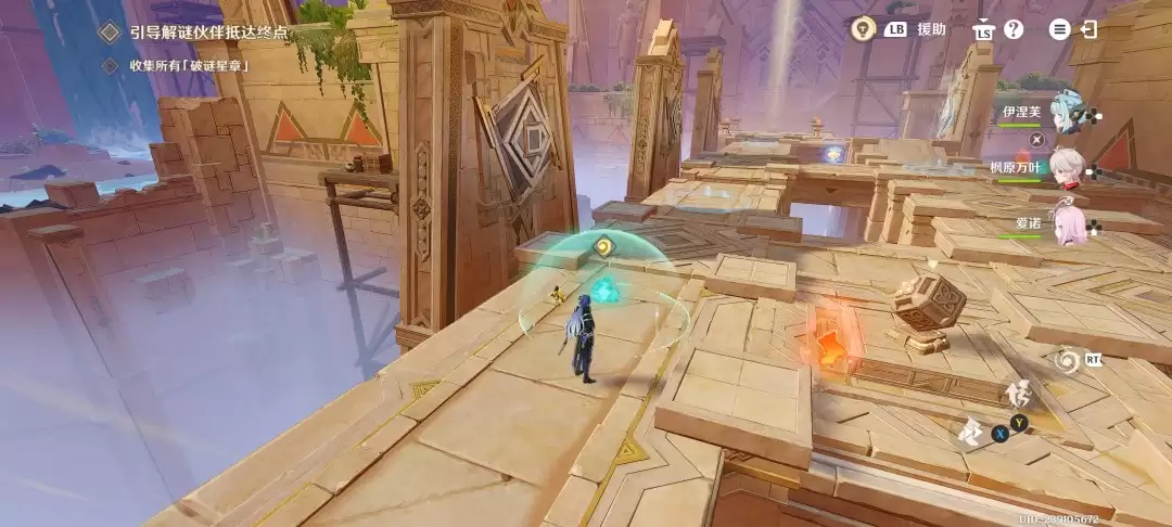 交互完成之后,来到另一处机关旁,拾取[疾速奇效]并放置在基座上,当解谜伙伴经过之后,再和旁边的机关交互即可顺利通关。