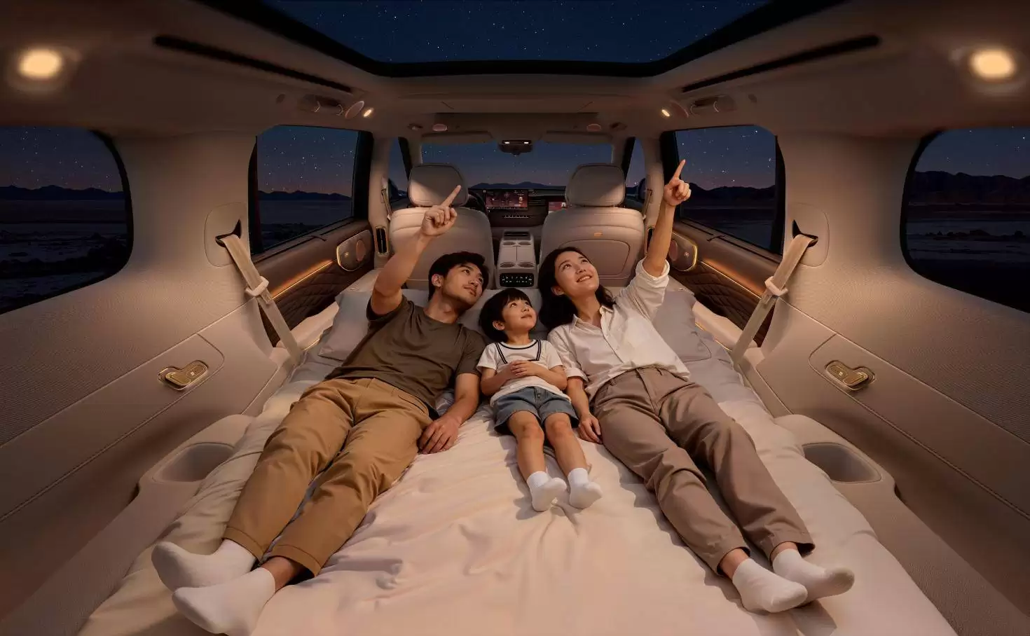 在豪华体验维度,智己LS9创造了多个行业首创。86%的空间得房率使三排座椅均能提供成年男性舒适乘坐空间,配合零重力座椅的16向电动调节功能,可实现127°躺姿。B&O音响系统搭载的24个扬声器单元,通过声学棱镜技术实现360°环绕声场,其低音表现较传统方案提升40%。更突破性的是智控地暖系统与瞬净新风系统的组合,前者通过石墨烯发热膜实现3分钟速热,后者则能在一分钟内完成全车空气置换,将豪华体验从视觉层面延伸至体感维度。