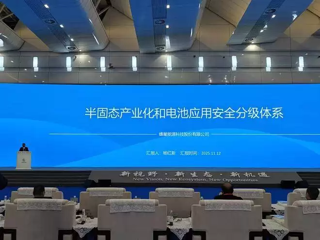 在四川宜宾举行的2025世界动力电池大会上,蜂巢能源科技股份有限公司董事长兼首席执行官杨红新首次公开披露了其电池应用安全分级体系,其中第四阶段标准已全面超越即将实施的"新国标"要求。这一突破性进展引发了行业高度关注。