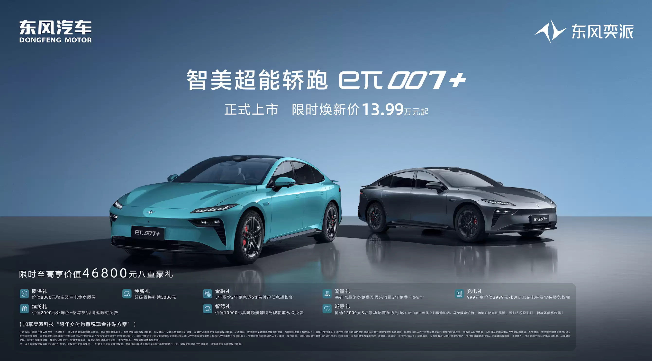 东风奕派旗下eπ007+轿跑正式登陆市场,推出纯电与增程双动力版本,全系搭载激光雷达并标配20余项驾驶辅助功能,起售价13.99万元。这款车型瞄准年轻消费群体,凭借百万级性能配置、智能交互体验和潮流设计语言,重新定义14万级轿跑市场标准。