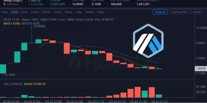 各大交易平台,包括币安、Bybit、火必等,早已摩拳擦掌,宣布上线 ARB 代币。火必交易所的数据显示,ARB 开盘价 0.1 美元,在短短五分钟内飙升至 14.85 美元,随后迅速回落,目前稳定在 1.6416 美元左右,24 小时内涨幅超过 1600%。