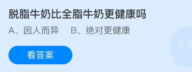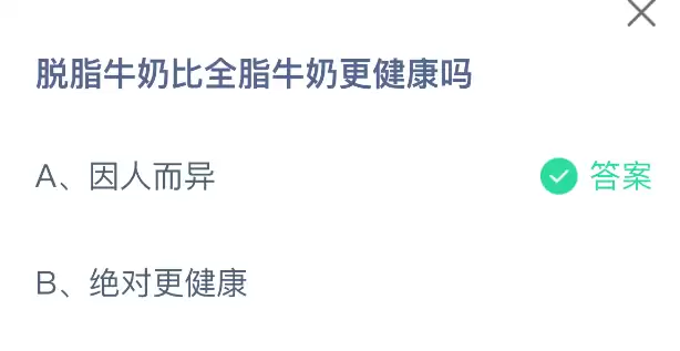 脱脂牛奶比全脂更健康?2025蚂蚁庄园11月13日答案详解