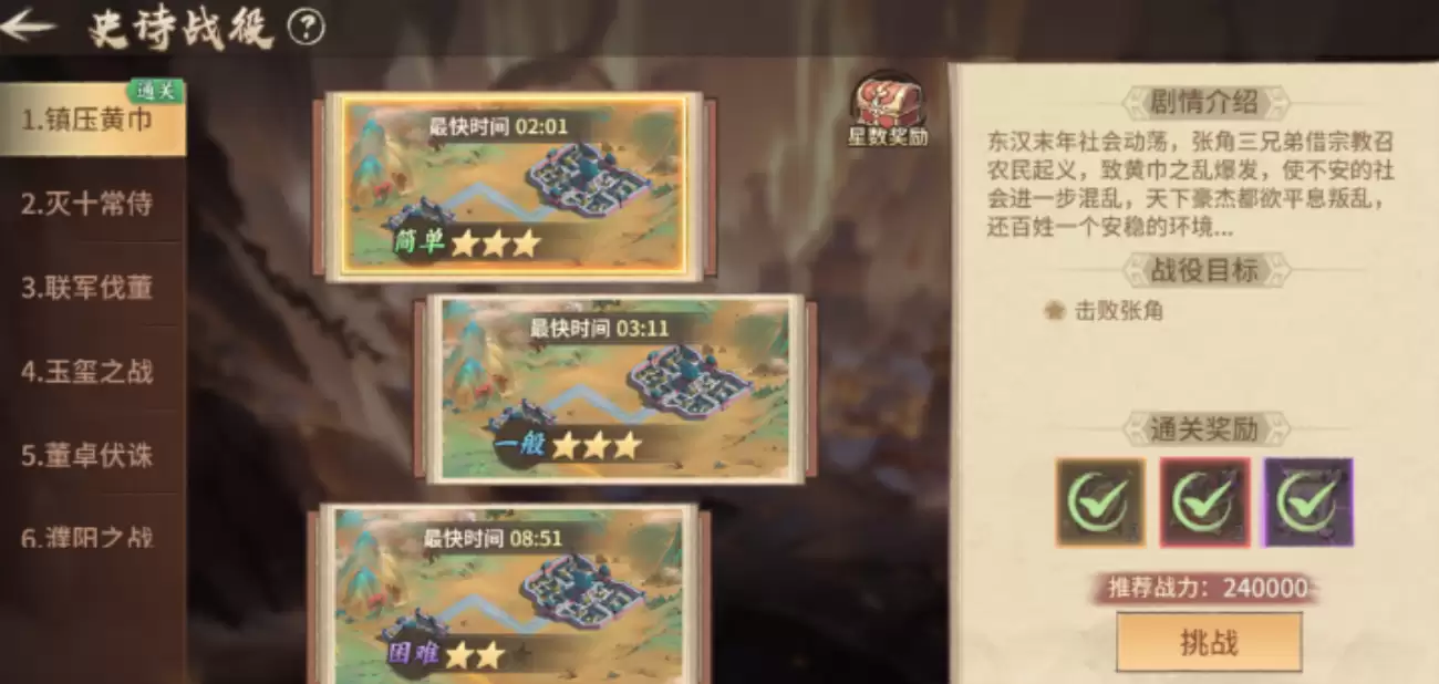 想要在《百战群英》里顺利通过史诗歌役吗?在这个群雄逐鹿的游戏世界里,史诗歌役是每位玩家展示谋略与实力的重要舞台。初次接触这个模式的玩家往往容易感到迷茫,不用担心,这份攻略将带你全面掌握战役规则与实战技巧。游戏中设有普通、精英和地狱三种难度选择,每通过一个难度都能获得相应奖励,当三种难度的累计星级达到一定数量后,还能解锁额外宝箱奖励。特别需要注意的是,战役评分以通关时间为主要标准——所用时间越短,获得的星级评价就越高。