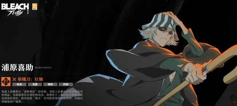 浦原喜助是一位擅长为队友提供增伤效果的辅助型角色,能够有效提升全队暴击率与伤害输出。此外,店长的技能还兼具聚怪与控制效果,其中核心奥义技能"神秘无迹"能在获得灵子解析状态后,为斩系角色提供额外的伤害加成。