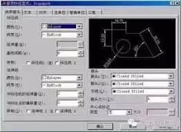 "符号和箭头"选项卡用于设置箭头样式、大小,圆心标记等参数。比如把箭头样式改为实心闭合箭头。
