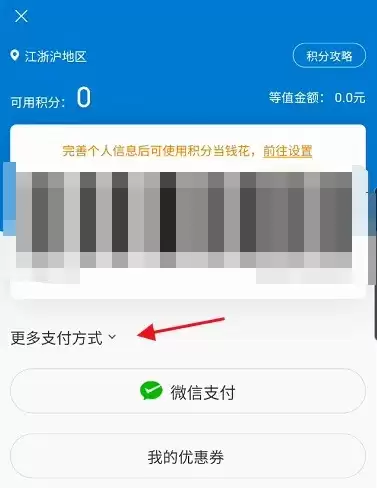 3、在会员码页面中,找到并点击"更多支付方式"选项。