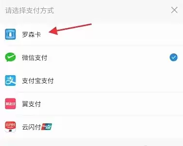 4、这时会弹出一个支付方式选择窗口,请从中选择"罗森卡"作为本次支付的支付方式。