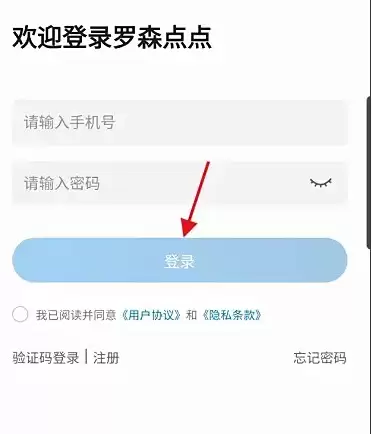 1、登录罗森点点App,输入您的账户信息完成登录。