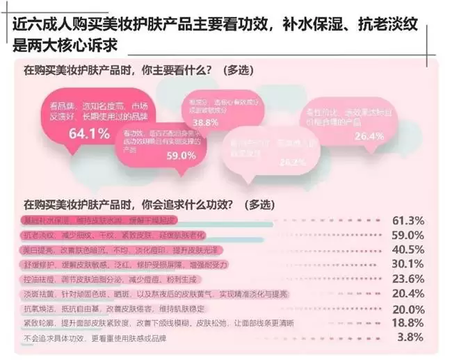 需求端的变化更为直观。经济观察报的消费调研显示,92%的受访者会主动研究护肤品成分,59%的消费者会根据自身肤质特点精准选择有效成分。在经典成分认知度调查中,“玻尿酸”以66.8%的知晓率高居榜首,“胶原蛋白”和“烟酰胺”分别以61.9%和57.3%的认知度位列其后。这种理性消费趋势在高端市场尤为突出,93.6%的消费者在选购高端美妆时首选京东平台,远超过淘宝天猫43%的选择率。