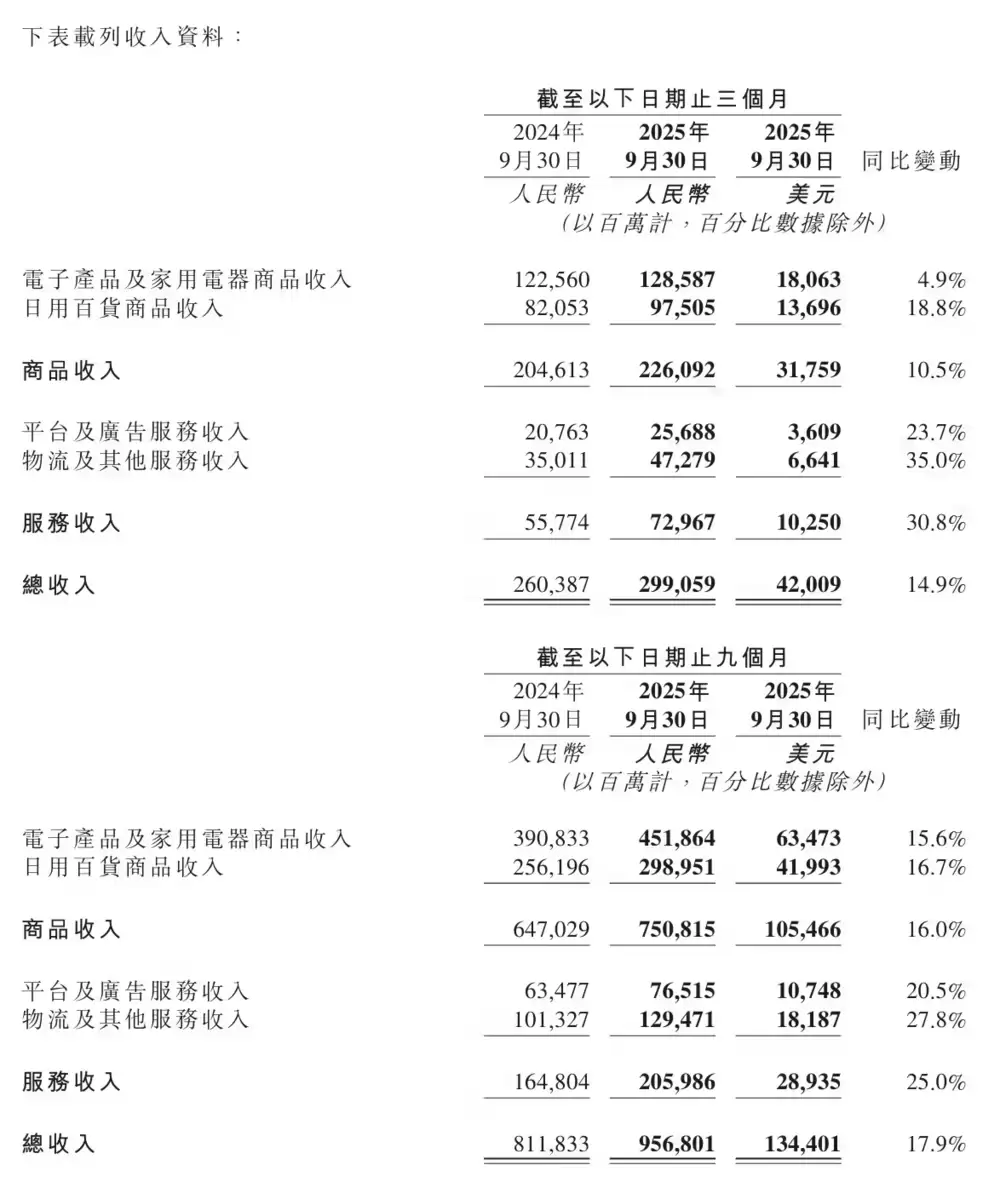 京东零售第三季度收入为2506亿元人民币(约352亿美元),较2024年同期增长11.4%。