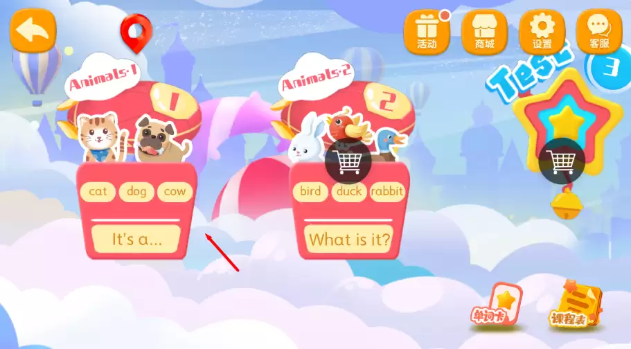 1. 进入学习界面后,课程首先从最简单的英语单词入手,按照由浅入深的方式帮助孩子逐步掌握词汇,让孩子在轻松愉悦的氛围中打好英语基础。