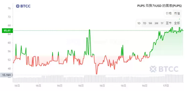截至4月16日,PUPS币的交易价格为53.26美元。尽管过去24小时内下跌了25.1%,但过去7天内上涨了46.7%,过去30天内的涨幅更是高达2886.4%。