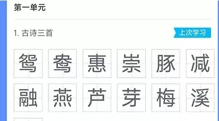 3、此时系统会自动加载教材内容,您就可以逐课查看每篇课文中标注的所有生字及其详细解析。