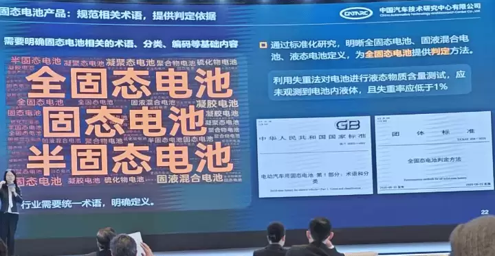 在2025年世界动力电池大会上,中国汽车技术研究中心首席科学家王芳透露,我国正在加快制定电池术语与分类国家标准,明确将电池划分为液态、固液混合、全固态三大类型。这一举措旨在统一行业术语,消除此前因定义模糊引发的争议,比如“半固态电池是否属于固态电池”“液体含量标准如何界定”等问题。