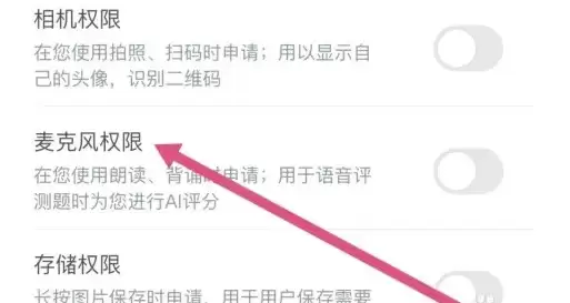 最后在隐私权限设置中找到【麦克风权限】选项,点击开启即可完成设置。