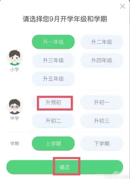 系统会弹出年级选择界面,在这里找到适合的年级后轻触选中,最后点击"确定"按钮即可成功保存设置。