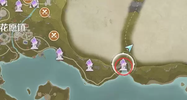 1、先传送到祈愿森林左下角的心愿通行许可处,具体位置可参考下图: