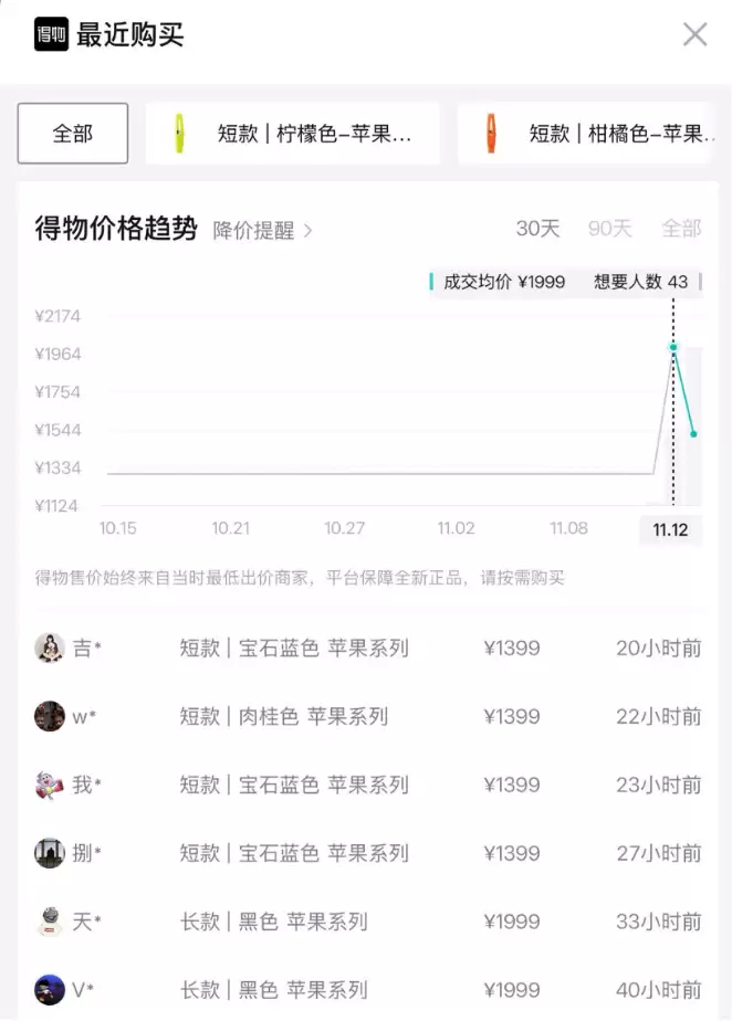 产品发售首日就出现供不应求的火爆场面,其中肉色长款率先售罄。二级市场价格迅速攀升,第三方平台数据显示,长款价格已飙升至2399元,短款也达到1699元,相比官方定价最高溢价超过500元。目前该产品仅在上海Apple静安零售店和苹果官网限量发售,商品页面特别标注了"数量有限,售完为止"的提示。
