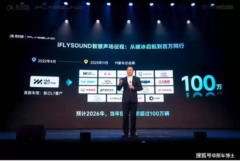 自2024年首款搭载车型量产以来,iFLYSOUND智慧声场已与19家车企品牌达成合作,覆盖超过100万辆汽车。这一成就不仅体现在数字增长上,更标志着中国AI音响品牌在全球市场中的崛起。科大讯飞智能音效产品线总经理柳燕飞在现场发布产品技术时表示,希望通过科技平衡和持续创新,让更多人享受百万豪车级别的听享体验。iFLYSOUND智慧声场依托行业唯一的GaN架构母带级音质声学系统和全链条自研的30多项车载音频算法,为用户打造了音乐厅、电影院、疗愈室等多样的聆听空间,同时引入AI降噪、声场智导、声场分区等智能功能,以及无麦K歌、露营空间、随行DJ等趣味场景。