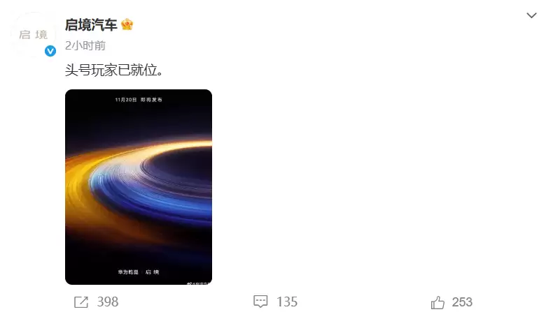 近日,汽车行业迎来一则重磅消息:广汽集团与华为携手打造的全新高端智能新能源汽车品牌——启境汽车,通过最新社交平台发布预热海报,正式宣布即将登场。海报以"头号玩家已就位"为醒目标语,搭配"开启新境""11月20日即将发布"以及"华为乾崑"等关键信息,瞬间在行业内激起千层浪,引发广泛关注。