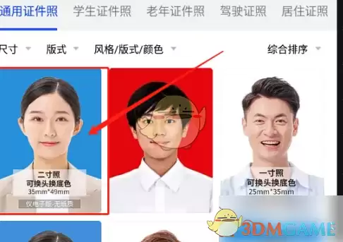 2. 进入“通用证件照”类别后,直接选择二寸照片模板。
