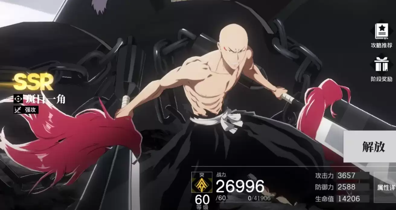 卍解黑崎一护是游戏内的单体爆发T0角色,尤其是在Boss战中,其破防技能能对目标施加巨大压力。虽然群体输出能力一般,但在单体作战方面即便是在前期也能表现出色。