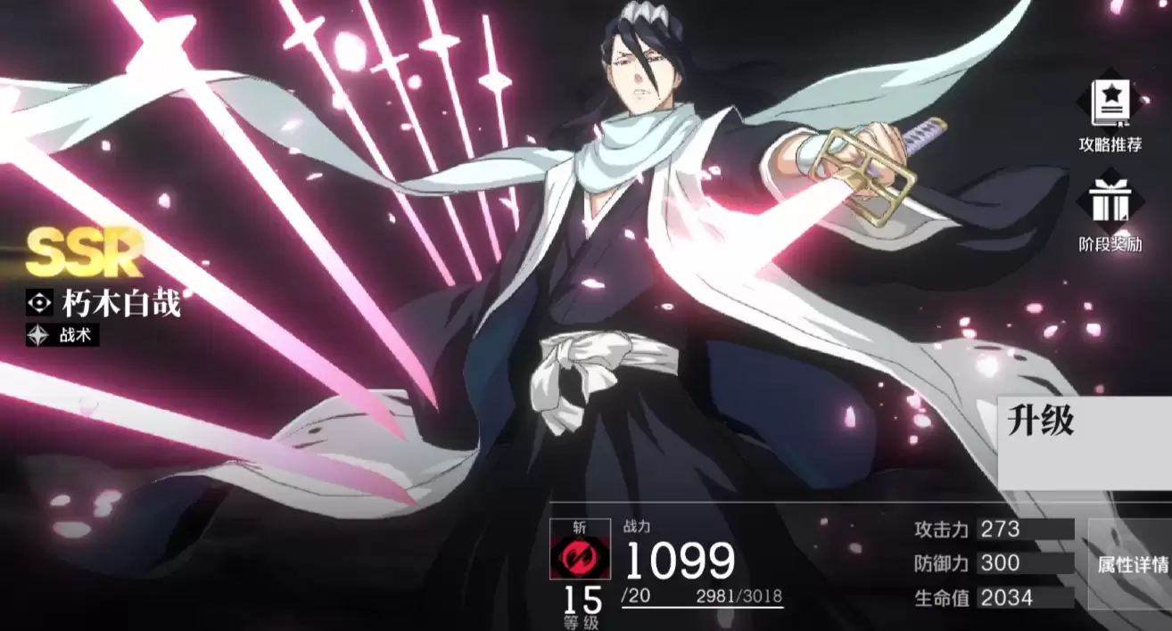 朽木白哉是SSR级别的强力输出,技能能够穿透敌方防御,大招期间攻击倍率大幅提升,非常适合推图与PVE场景,在这些方面堪称最强输出之一。