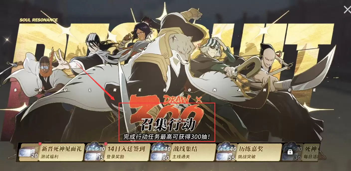 此外,每次抽取都能获得积分,这些积分可以用来兑换各种道具。在游戏开服期间,还有特别的“征召行动”任务,玩家参与其中可以领取新晋死神见面礼,以及连续14天登录的豪华礼包。完成战线集结和历练嘉奖等任务后,也能获得额外的抽卡机会。