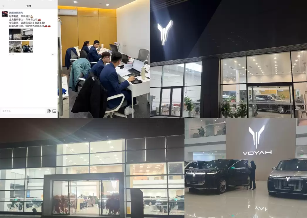 有销售人员在朋友圈晒出灯火通明的门店照片并配文:"全员备战泰山上市,新车已就位,诚邀您成为首批品鉴官!"