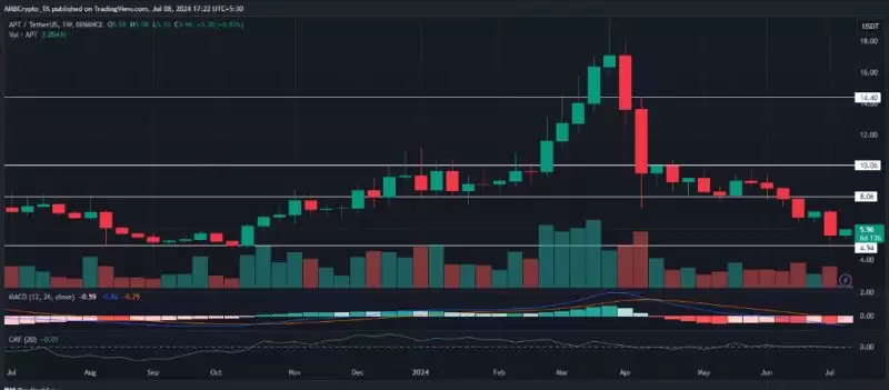 这些指标表明,尽管 APT 显示出一些企稳迹象,但其上涨势头仍然较弱。因此,需要更强的买盘力量来确认趋势逆转。