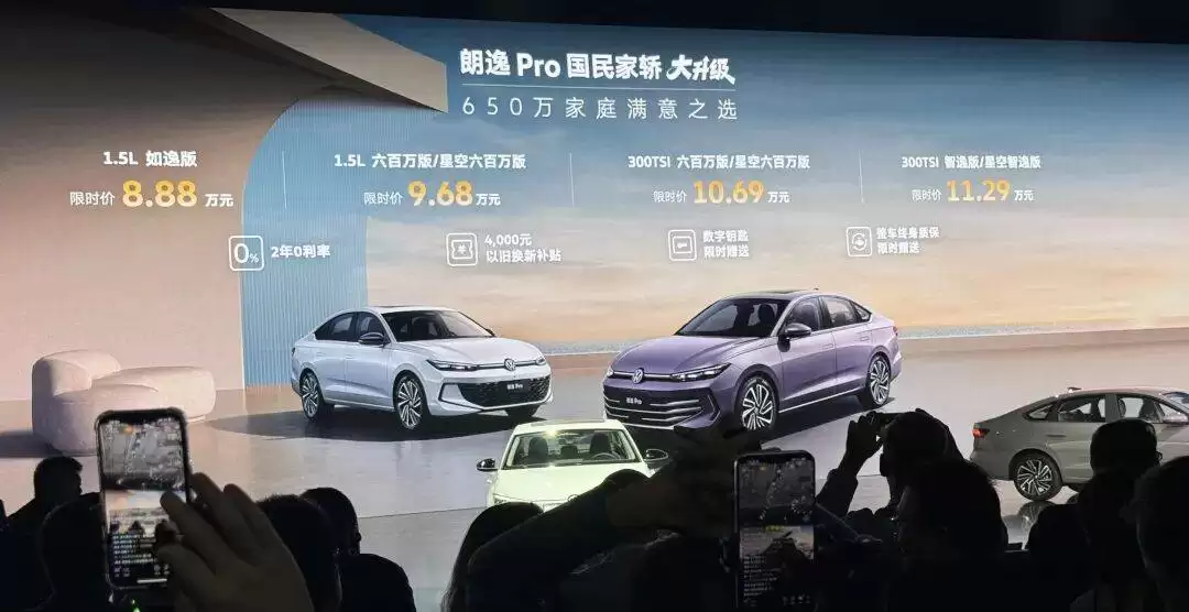 上汽大众全新朗逸Pro近日正式登场,作为Pro家族的第四位成员,这款新车以8.88万至11.29万元的价格区间开启市场征程。凭借尺寸升级、底盘优化和智能化配置三大核心亮点,新车迅速成为燃油轿车市场的焦点,现场观众甚至将其誉为"小帕萨特"。