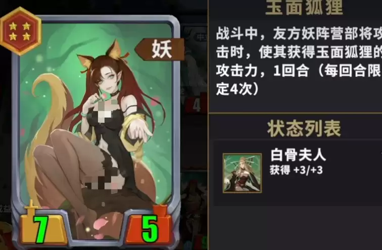 当对方阵营中出现比我方血量更厚、攻击力更强的敌人时,就可以派出玉面狐狸上场。她能够消灭大型单位敌人,通过叠加方式对敌人造成更强伤害。虽然她的毒杀技能非常强大,但对于王玺这样的圣盾卡牌还是存在一定制约因素,无法直接进行毒杀。