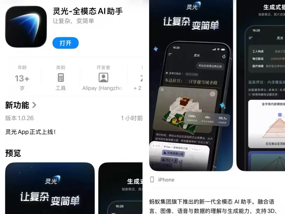 蚂蚁集团发布AI助手“灵光”:全模态交互,30秒重塑应用生产力