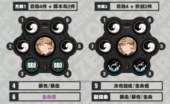 ③ 两件套可选「折枝剑歌」或「啄木鸟电音」,按词条优劣择优佩戴即可。