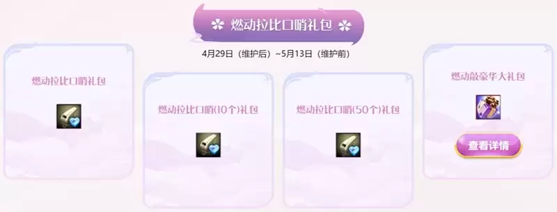 在4月29日至5月5日期间,“提尔的限时馈赠”活动开启,英雄们每日可以8马赫印记的特惠价格兑换蝶序拉比口哨礼包和燃动拉比口哨礼包哦!不容错过啦!