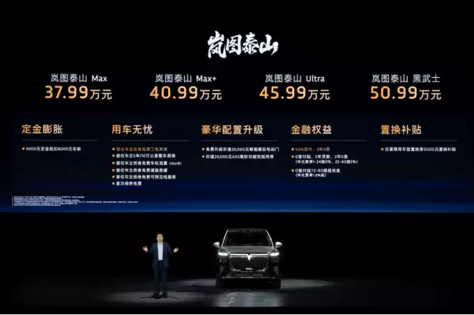 在深圳国际会展中心,岚图汽车正式发布了全新旗舰SUV——岚图泰山,推出了Max版、Max+版、Ultra版以及黑武士版四大车型,最新指导价区间为37.99万元至50.99万元。这款车围绕“豪华不妥协”的核心理念展开,从底盘调校、智能科技、空间布局到安全防护等多个维度均展现出突破性实力,为中国豪华SUV市场树立了全新标杆。