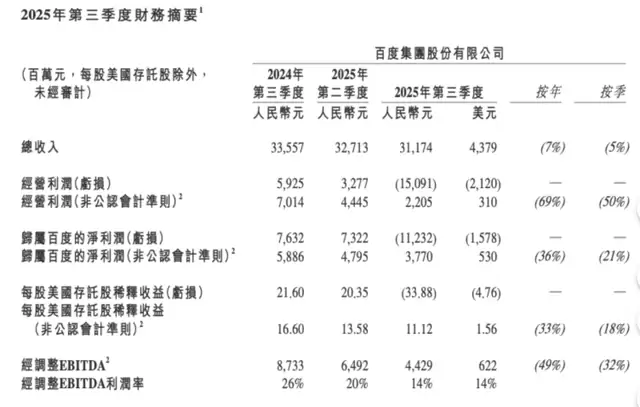 百度2025 Q3财报:总营收下滑7%,AI业务激增52%成新支柱